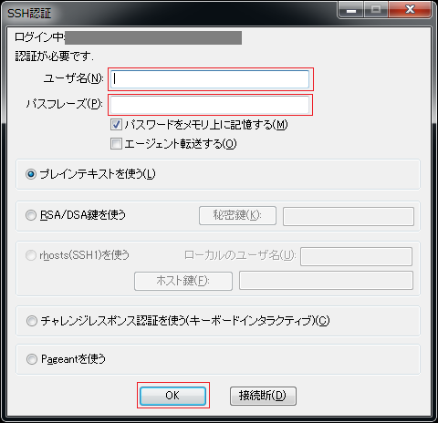 sshでのログイン